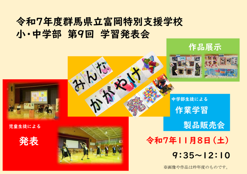 群馬県立富岡特別支援学校小・中学部第9回学習発表会を実施いたします。