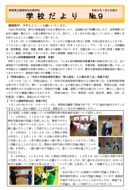 【小学部・中学部】富岡市七日市1116-1 電話 0274-75-1074 FAX 0274-75-1075