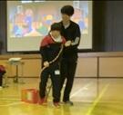 ★1・2年生は、「だるまさんが~ともだちといっしょ」と題して劇を発表しました。劇の中で、友達と一緒に雑巾がけをしたり、パズルや大玉転がしをしたりしながら、日頃の学習の成果を発揮することができました。