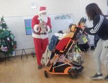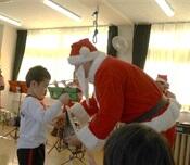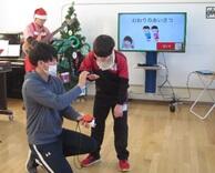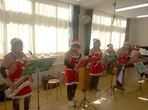 ☆12月4日(木)に、クリスマス集会を行いました。ボランティアのアンサンブルマミーズさんに、クリスマスソングなどを演奏していただき、一緒に楽器を鳴らすなどして、演奏を楽しむことができました。サンタクロースも登場し、一人ずつプレゼントをもらい、嬉しそうな児童の様子が見られました。5・6年生の児童が、タブレット端末やスイッチを使って、司会や挨拶を担当しました。